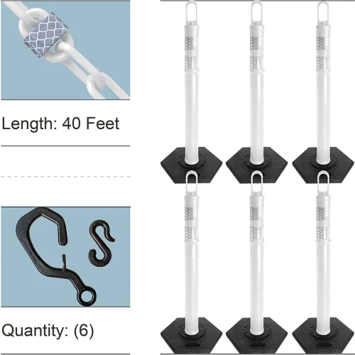 Mr. Chain® Delineator Kit with 2" x 40'L Reflective Chain, Hexagonal Base, White, Pack of 6