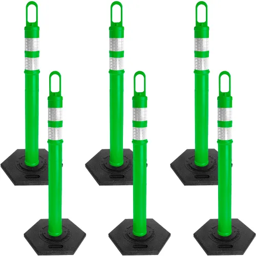 Mr. Chain® Delineator with Reflective Stripe, 18 lb. Base, Green, Pack of 6