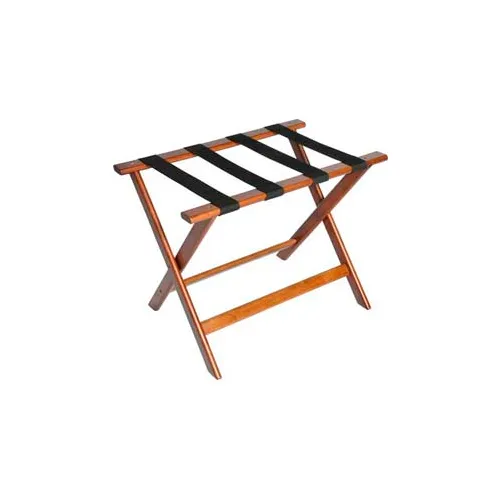 Deluxe Flat Top Wood Luggage Rack, Cherry Mahogany, Black Straps 1 Pack