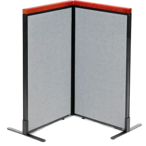 Interion® Deluxe Freestanding 2-Panel Corner Room Divider, 24-1/4"W x 43-1/2"H Panels, Gray