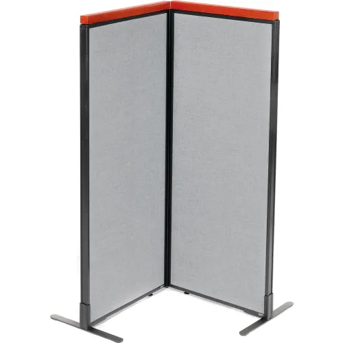Interion® Deluxe Freestanding 2-Panel Corner Room Divider, 24-1/4"W x 61-1/2"H Panels, Gray