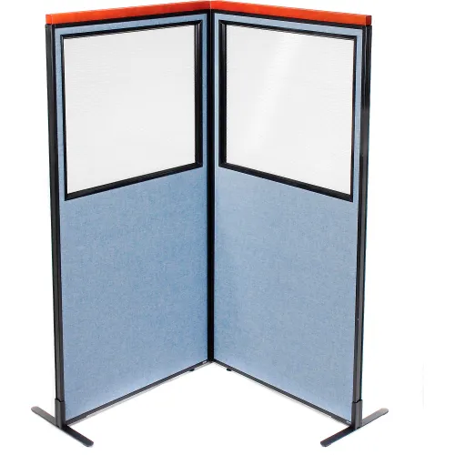 Interion® Deluxe Freestanding 2-Panel Corner Divider w/Partial Window 36-1/4"W x 73-1/2"H Blue