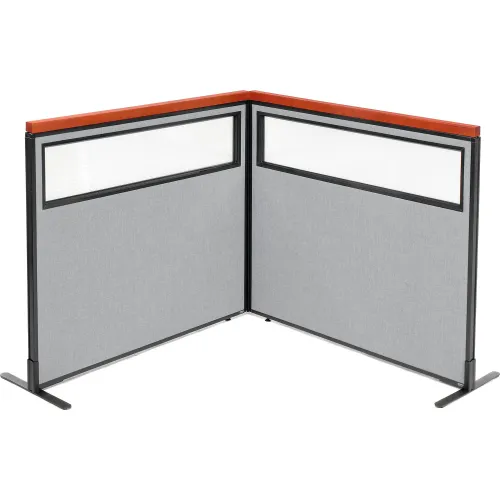Interion® Deluxe Freestanding 2-Panel Corner Divider w/Partial Window 48-1/4"W x 43-1/2"H Gray