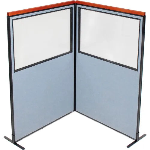 Interion® Deluxe Freestanding 2-Panel Corner Divider w/Partial Window 48-1/4"W x 73-1/2"H Blue