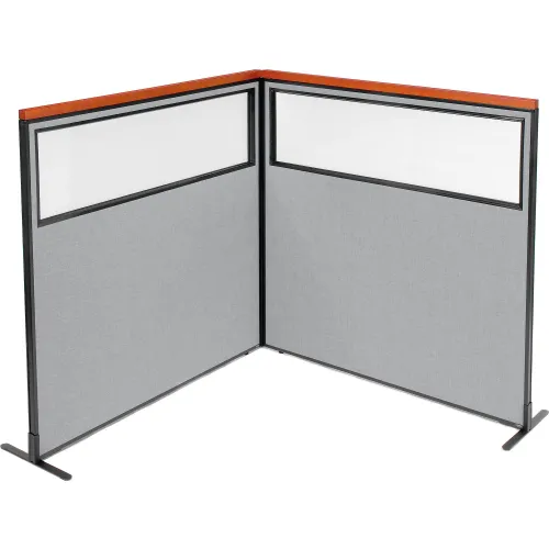 Interion® Deluxe Freestanding 2-Panel Corner Divider w/Partial Window 60-1/4"W x 61-1/2"H Gray