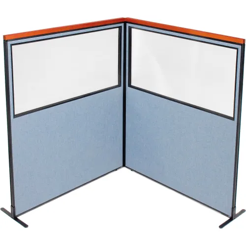 Interion® Deluxe Freestanding 2-Panel Corner Divider w/Partial Window 60-1/4"W x 73-1/2"H Blue