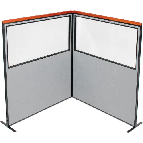 Interion® Deluxe Freestanding 2-Panel Corner Divider w/Partial Window 60-1/4"W x 73-1/2"H Gray