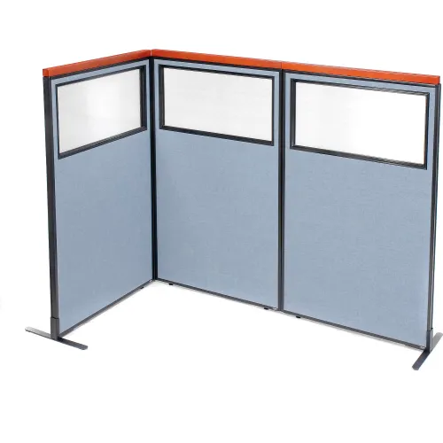 Interion® Deluxe Freestanding 3-Panel Corner Divider w/Partial Window 36-1/4"W x 61-1/2"H Blue