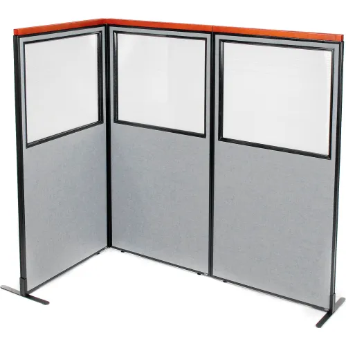 Interion® Deluxe Freestanding 3-Panel Corner Divider w/Partial Window 36-1/4"W x 73-1/2"H Gray