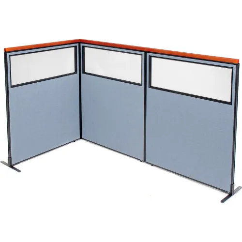 Interion® Deluxe Freestanding 3-Panel Corner Divider w/Partial Window 48-1/4"W x 61-1/2"H Blue