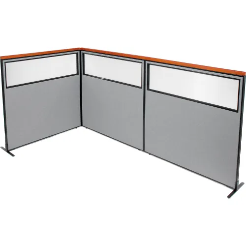 Interion® Deluxe Freestanding 3-Panel Corner Divider w/Partial Window 60-1/4"W x 61-1/2"H Gray