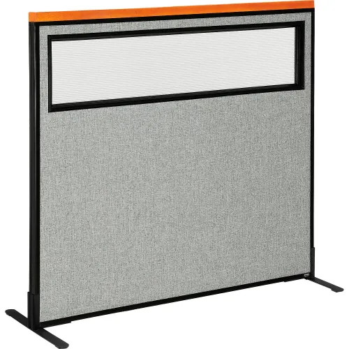 Interion® Deluxe Freestanding Office Partition Panel w/Partial Window 48-1/4"W x 43-1/2"H Gray