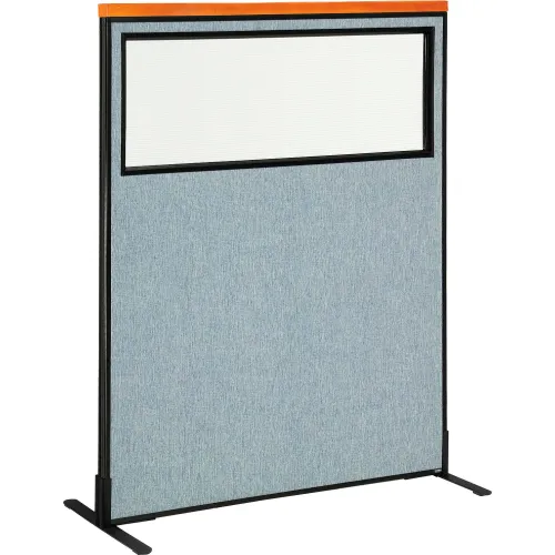 Interion® Deluxe Freestanding Office Partition Panel w/Partial Window 48-1/4"W x 61-1/2"H Blue