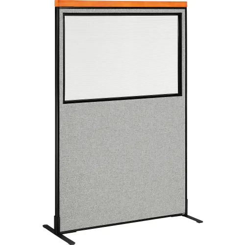 Interion® Deluxe Freestanding Office Partition Panel w/Partial Window 48-1/4"W x 73-1/2"H Gray