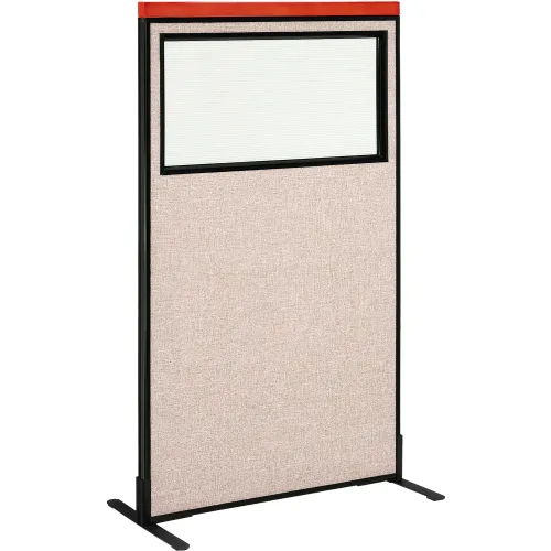 Interion® Deluxe Freestanding Office Partition Panel w/Partial Window 36-1/4"W x 61-1/2"H Tan