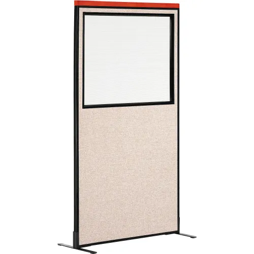 Interion® Deluxe Freestanding Office Partition Panel w/Partial Window 36-1/4"W x 73-1/2"H Tan