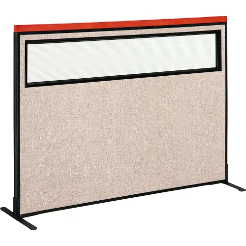 Interion® Deluxe Freestanding Office Partition Panel w/Partial Window 60-1/4"W x 43-1/2"H Tan