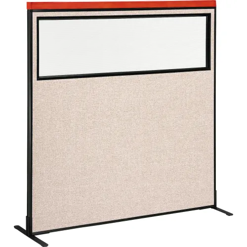 Interion® Deluxe Freestanding Office Partition Panel w/Partial Window 60-1/4"W x 61-1/2"H Tan