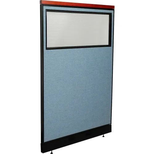 Interion® Deluxe Office Partition Panel w/Partial Window & Raceway 48-1/4"W x 101-1/2"H Blue