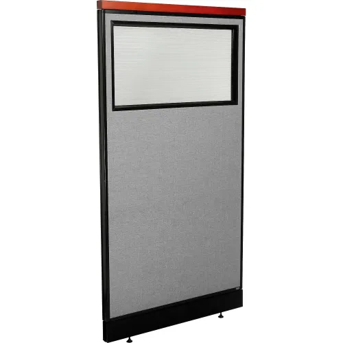 Interion® Deluxe Office Partition Panel w/Partial Window & Pass-Thru Cable 36-1/4Wx65-1/2H GRY