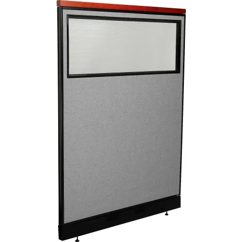 Interion® Deluxe Office Partition Panel w/Partial Window & Pass-Thru Cable 48-1/4Wx65-1/2H GRY