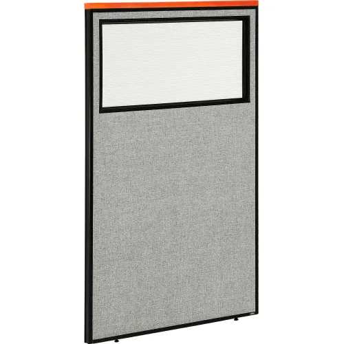Interion® Deluxe Office Partition Panel with Partial Window, 36-1/4"W x 61-1/2"H, Gray