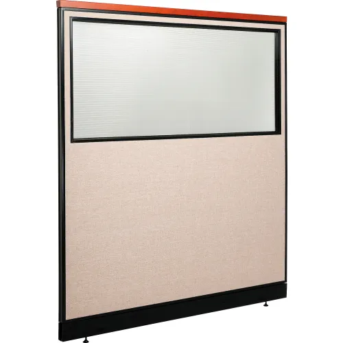 Interion® Deluxe Office Partition Panel w/Partial Window & Raceway 60-1/4"W x 65-1/2"H Tan