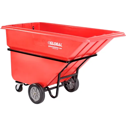 Global Industrial Heavy Duty Plastic Tilt Truck, 1 Cu. Yd. Cap,1250 Lbs. Cap, Red