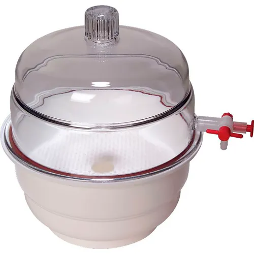United Scientific Desiccator, Vacuum, White Base, Polypropylene/Polycarbonate, 6" Dia.