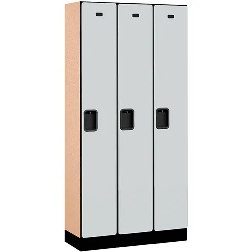 Salsbury 1-Tier 3 Door Designer Wood Locker, 36"W x 15"D x 76"H, Gray, Partially Assembled