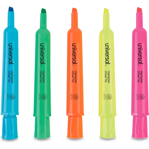 Universal™ Desk Highlighters, Chisel Tip, Assorted Colors, Dozen