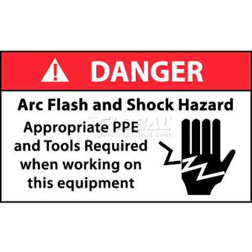 NMC DGA61AP Arc Flash Labels, Danger Arc Flash & Shock Hazard Appropriate PPE, 3" X 5", Wht/Rd/Blk
