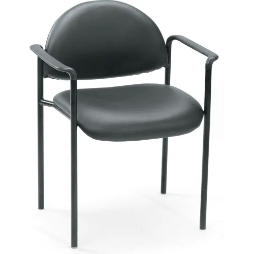 Boss Stacking Guest Chair with Arms - Vinyl - Low Back - Black - Pkg Qty 4