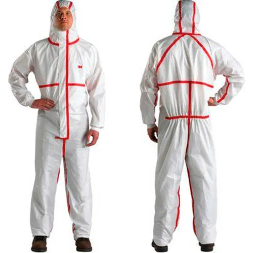 3M™ Disposable Coverall, Knit Cuffs & Attached Hood, White/Red, L, 4565-BLK-L, 25/Case