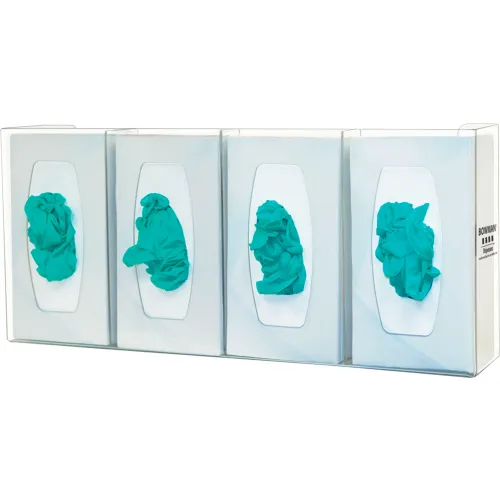 Bowman® Glove Box Dispenser - Quad - Divided 22.63"W x 10.13"H x 4"D, Clear