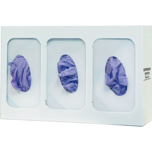 Bowman® Glove Box Dispenser - Triple - Divided 15.87"W x 10.03"H x 3.81"D, White