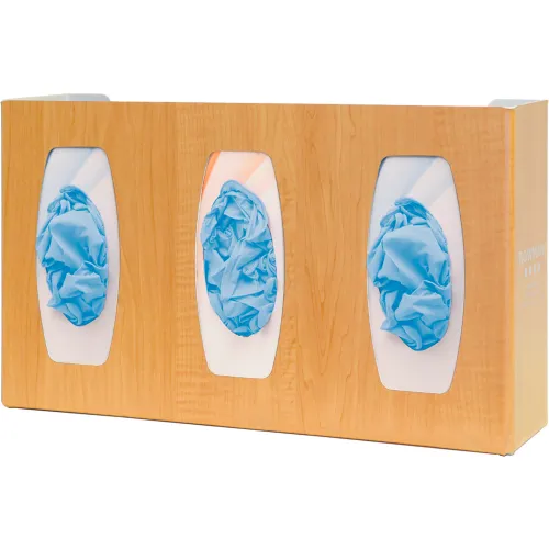 Bowman® Glove Box Dispenser - Triple - Divided 17"W x 10.13"H x 4"D, Maple Fauxwood