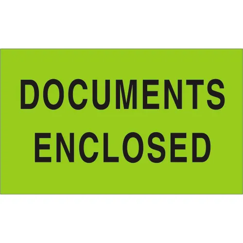 Paper Labels w/ "Documents Enclosed" Print, 5"L x 3"W, Fluorescent Green & Black, Roll of 500