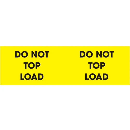 Paper Labels w/ "Don't Top Load" Print, 3"L x 10"W, Bright Yellow & Black, Roll of 500
