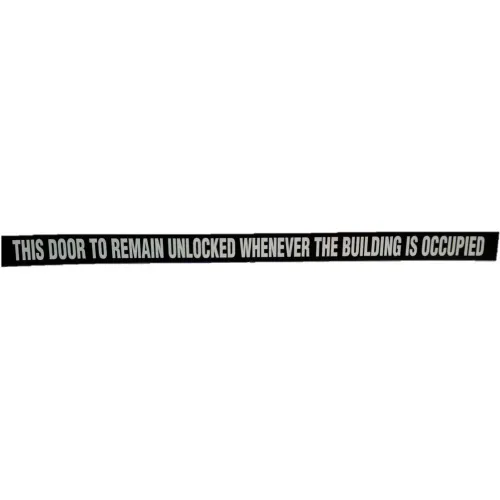 Door Decal - This Door to Remain Unlocked While Building is Occupied, 1-1/2" x 24", White On Black - Pkg Qty 10