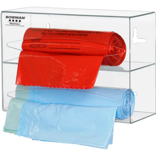 Bowman® Double Bag Dispenser, 10-1/8"W x 3-15/16"D x 7-1/8"H, Transparent