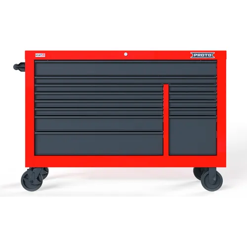 Proto® Double Bank Roller Cabinet W/ 13 Drawers, 55"W x 22-3/8"D x 38-1/2"H, Red & Gray