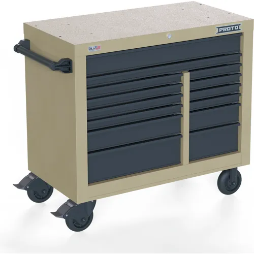 Proto® Double Bank Roller Cabinet W/ 14 Drawers, 42"W x 22-3/8"D x 38-1/2"H, Tan