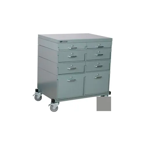 Stackbin® Counter Height Mobile Cabinet with 8 Drawers & Steel Top, 32"W x 24"D x 35"H, Gray