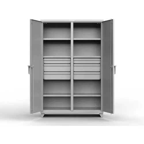 Stronghold Heavy Duty Double Shift Storage Cabinet w/ 6 Drawers, 14 Gauge, 48"W x 24"D x 75"H, Black