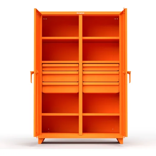 Stronghold HD Double Shift Storage Cabinet with 6 Drawers, 14 Gauge, 48"W x 24"D x 75"H, Orange