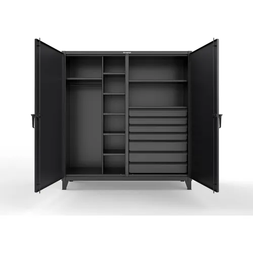 Strong Hold® Double Shift Uniform Cabinet with 7 Drawers, 12 GA, 72" W x 24" D x 78" H, Black