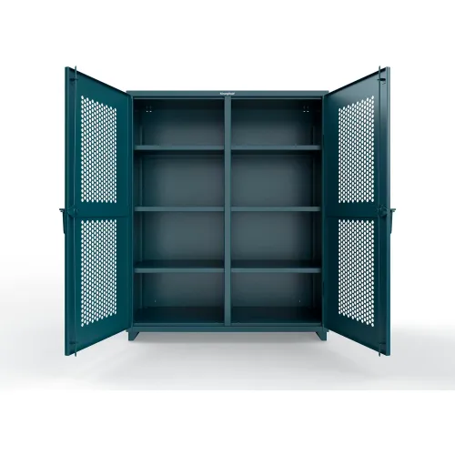 Strong Hold® Double Shift Ventilated Hex Cabinet, 14 GA, 60" W x 24" D x 75" H, Blue