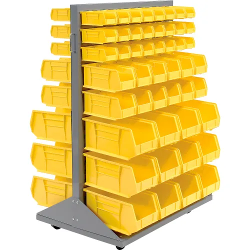 Global Industrial Mobile Floor Rack w/ 48(C), 24(D), 24(F) Yellow Bins, 36"W x 25-1/2"D x 55"H