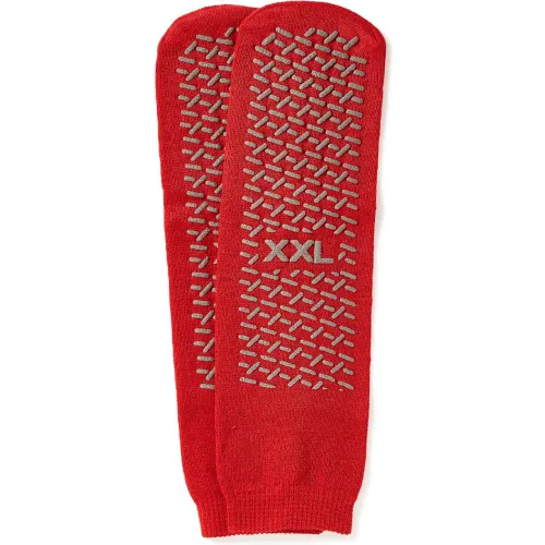Medline Double Tread Patient Slippers, Size 2XL, Red, 48 Pack